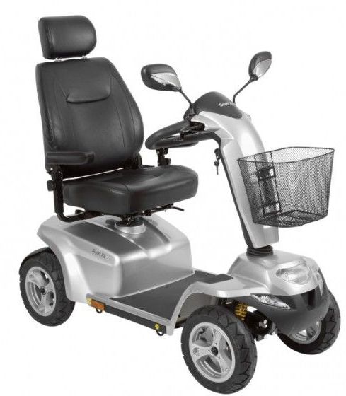 Scott: scooter 4 ruote stabile ed affidabile, dotato di cestino, specchietto sinistro, braccioli regolabili in altezza, batterie da 50 Ah per garantire una autonomia ottimale ed una velocità di 12 km/h, portata massima utente 136 kg, autonomia 39 km.