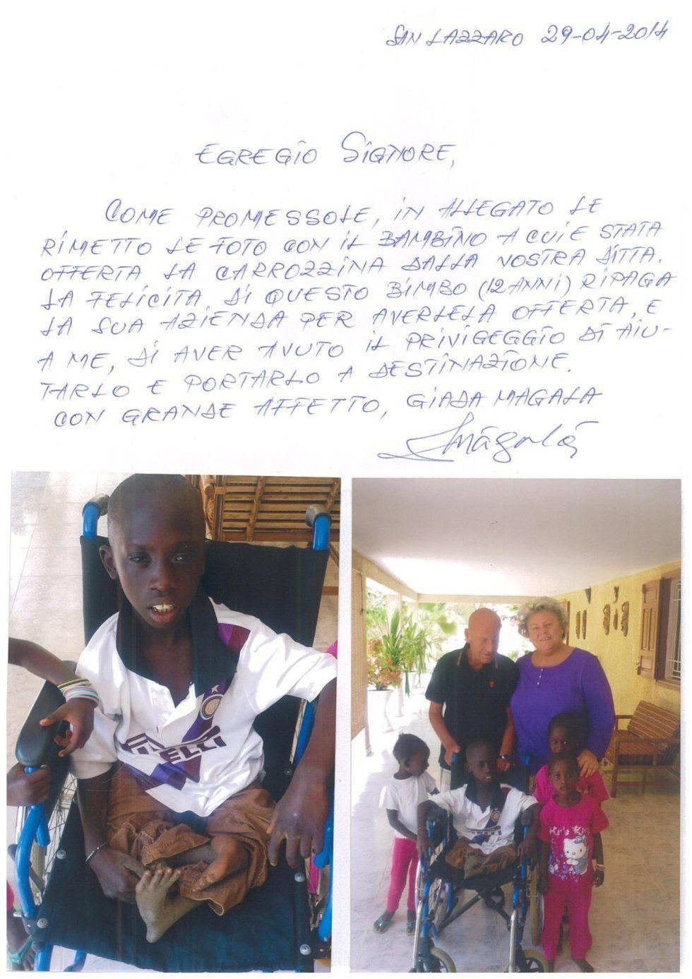 I ringraziamenti dal Senegal, dall'Uganda, dal Camerun, da Cuba e da altre realtà, dove le condizioni dei disabili sono molto disagiate, ci appagano, ci gratificano e ci spingono a fare ancora di più.